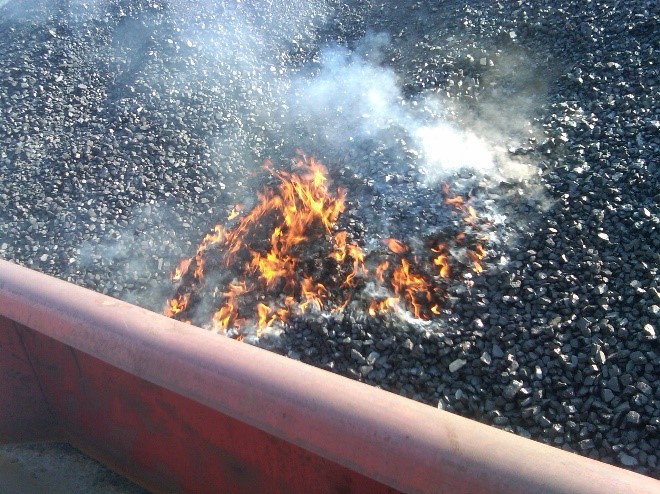 Spontaneous combustion: when coal oxidizes and self-ignites, especially small pieces or those containing iron pyrites. Breaking coal during loading made this worse. A lethal combination.