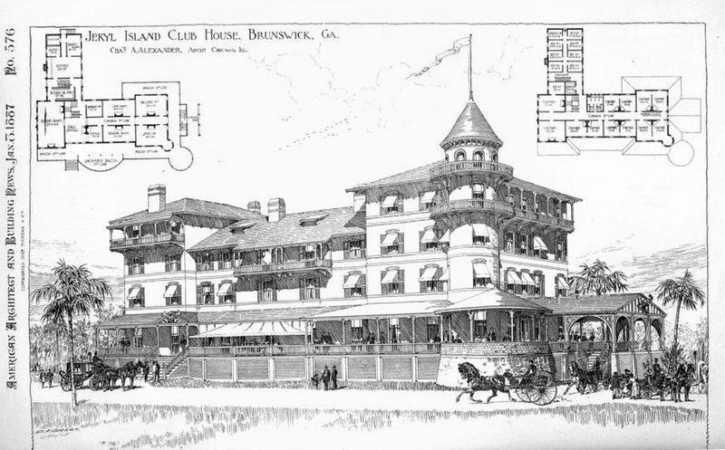 A private retreat owned by the ultra-exclusive Jekyll Island Club, whose members controlled an estimated 1/6th of the world’s wealth.