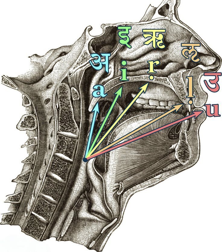 Every vowel in Sanskrit emerges from a distinct place in the vocal tract: