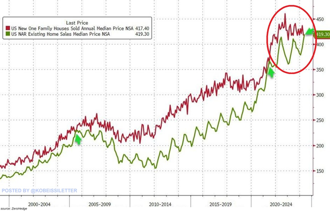 For the first time in history, a NEW home in the US costs $33,500 LESS than an EXISTING home, per Reventure.