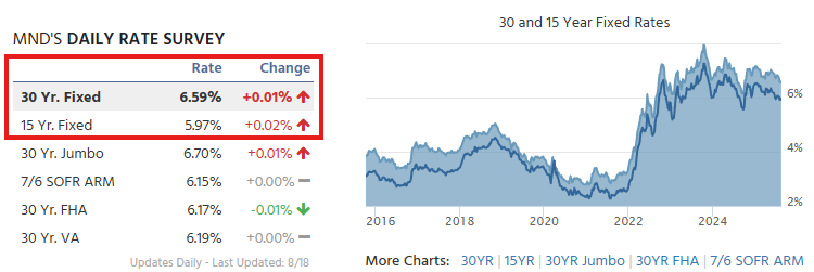 Currently, the average 30Y Mortgage rate for a home purchase is up to ~6.59%.