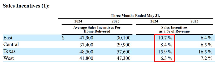 Lennar's, $LEN, sales incentives in 2024 hit as much as 15.9% of revenue in parts of the US, particularly in Texas.