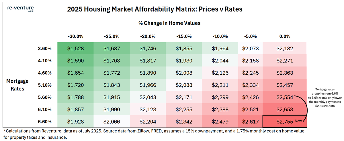 5) For instance, Mortgage Rates dropping from 6.6% to 5.6% would only lower the monthly payment to buy down to around $2,550/month.
