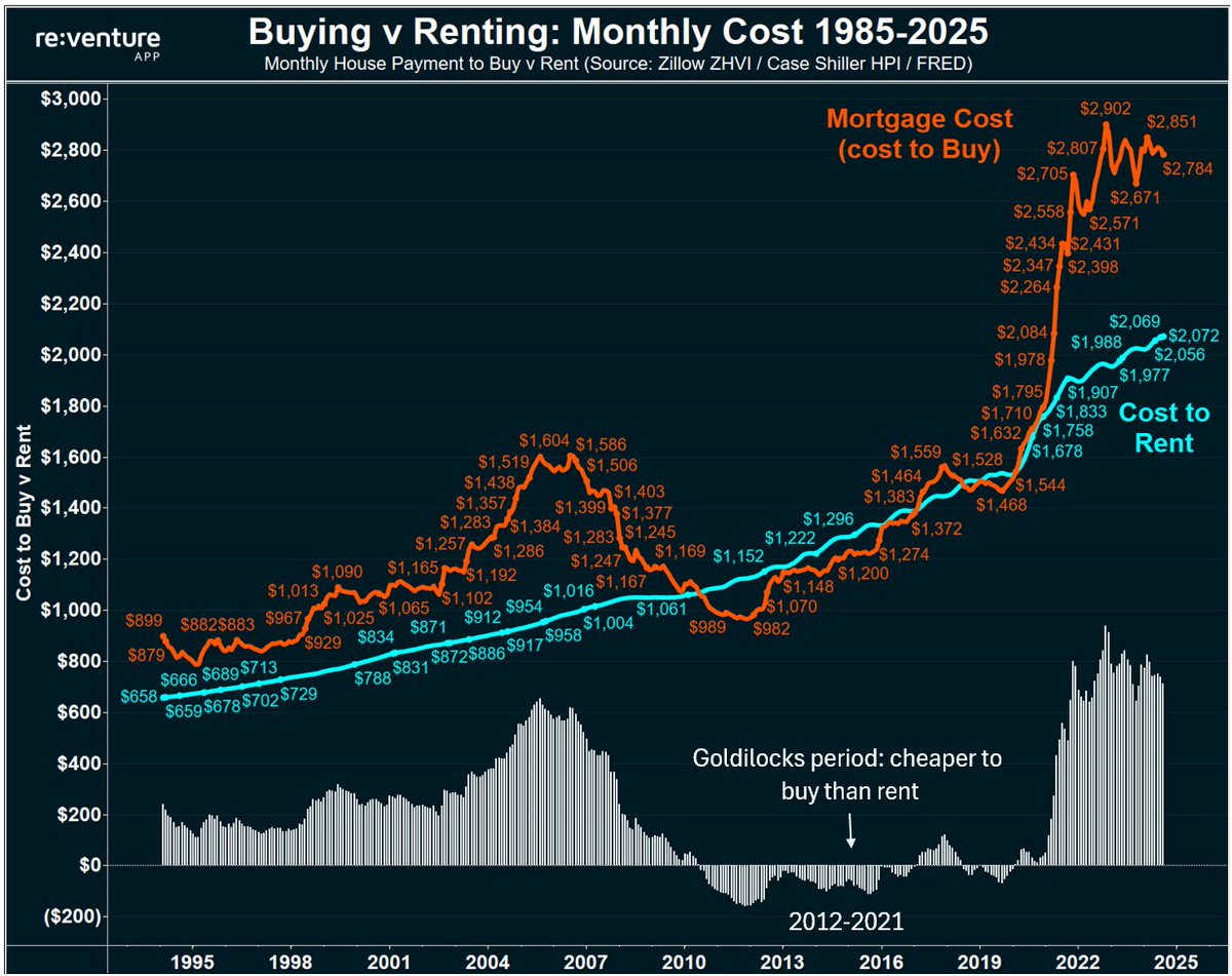 1) Today's premium to buy of $713/month is one of the highest on record, and a key reason why homebuyer demand is near record lows.