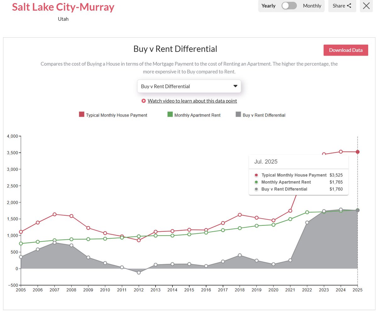 In a market like Salt Lake, the cost to buy v rent was almost identical from 2012-2021.