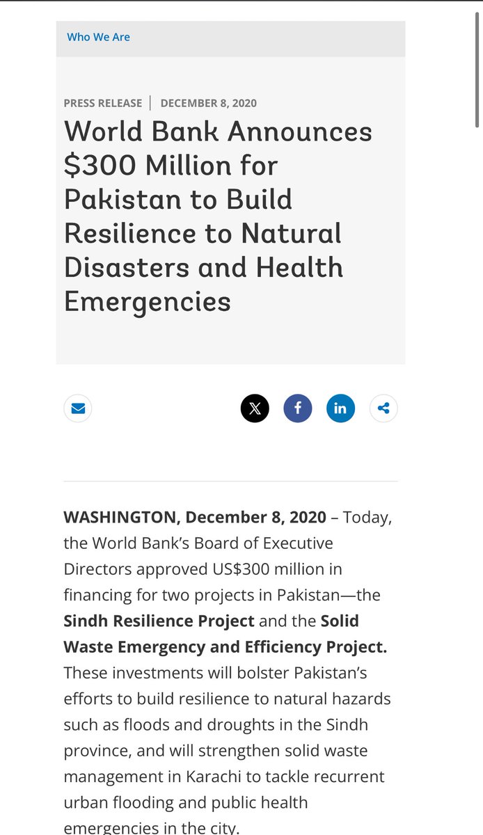 World Bank: Sindh Flood Emergency Rehabilitation Project (SFERP) — IDA USD 500m, approved December 2022; additional financing USD 450m approved December 2024. Provincewide for flood damaged infrastructure and resilient housing after the 2022 floods.