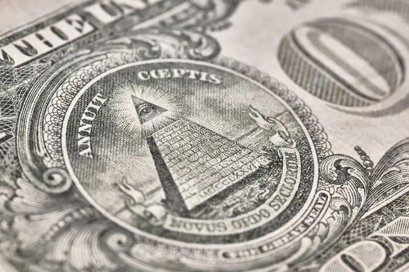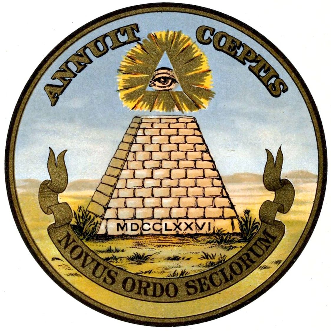 On the Great seal of the United States, an eye watches over a pyramid with the motto “Annuit Cœptis” inscribed.