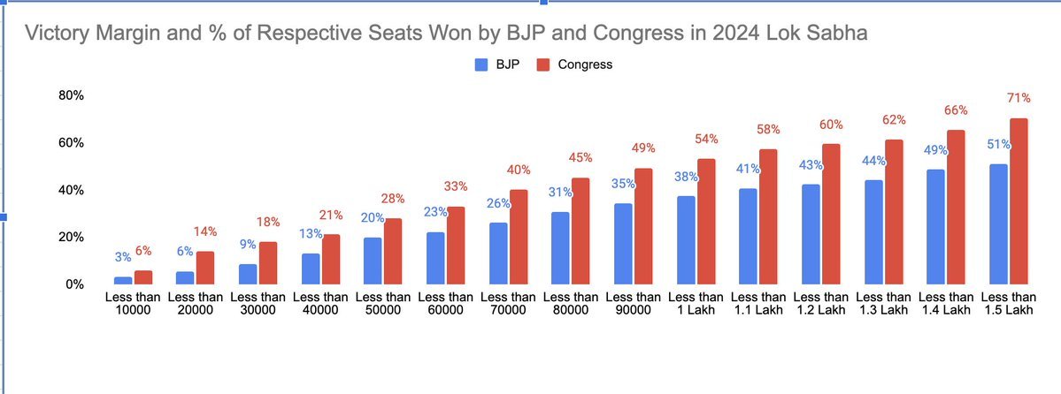 In 2019 too, 162 seats were won by <50,000 votes; in 2014, 110 seats. In 2024, ~100 seats were close. This reflects competitive multiparty democracy, not fraud.