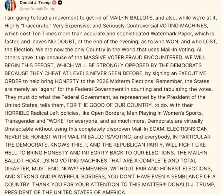 7. Please share this thread if you agree that President Trump is right—that it’s time to end mail-in voting—and follow if you’d like to see more posts like this one