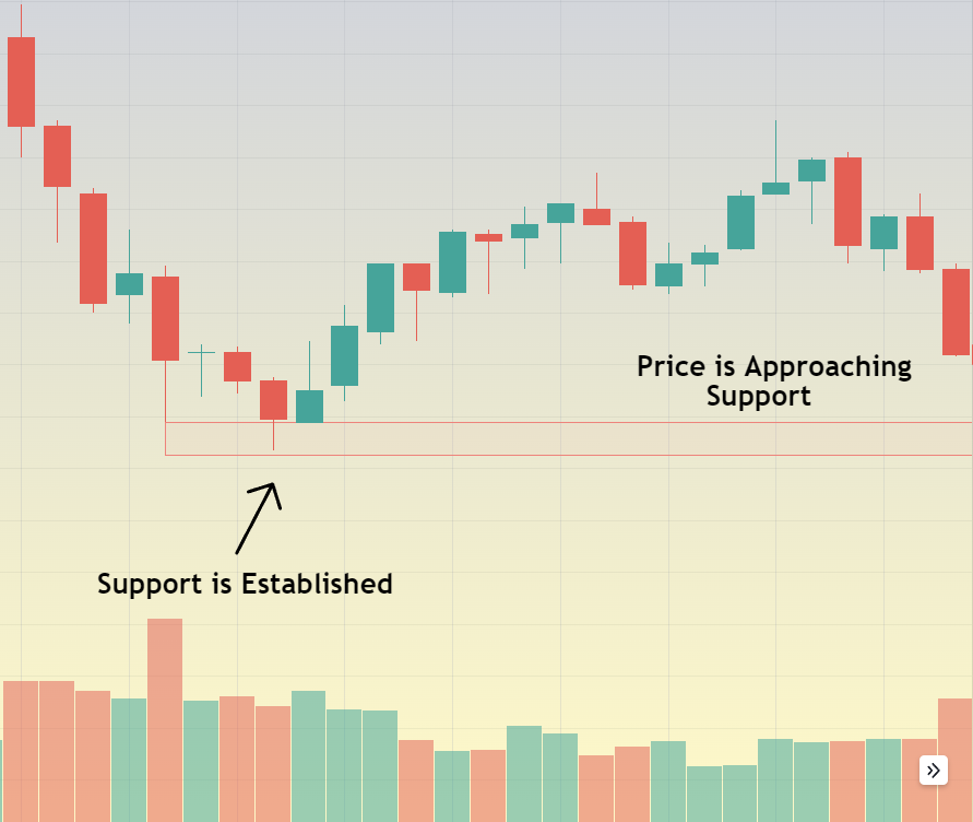Support refers to a key level below the current price that has a high probability of creating a bounce