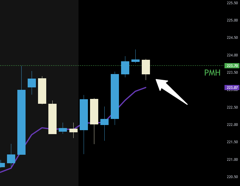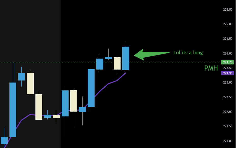 Price simply came down to the purple line and bounce back over the PMH. I waited about 6 minutes until buyers showed strength at the purple line and got back over. No I didn't wait for a candle close. I used common sense. Was the dip bought? Yes. Are we over PMH? Yes. I bought calls.