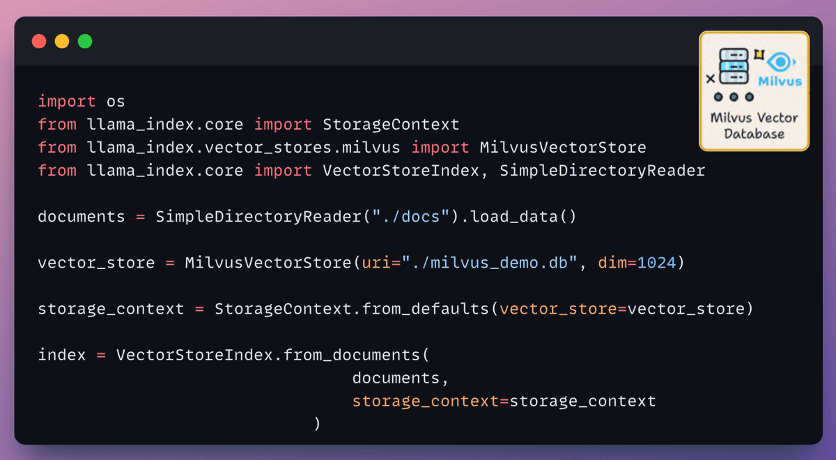 Our primary source of knowledge is the user documents that we index and store in a Milvus vectorDB collection.