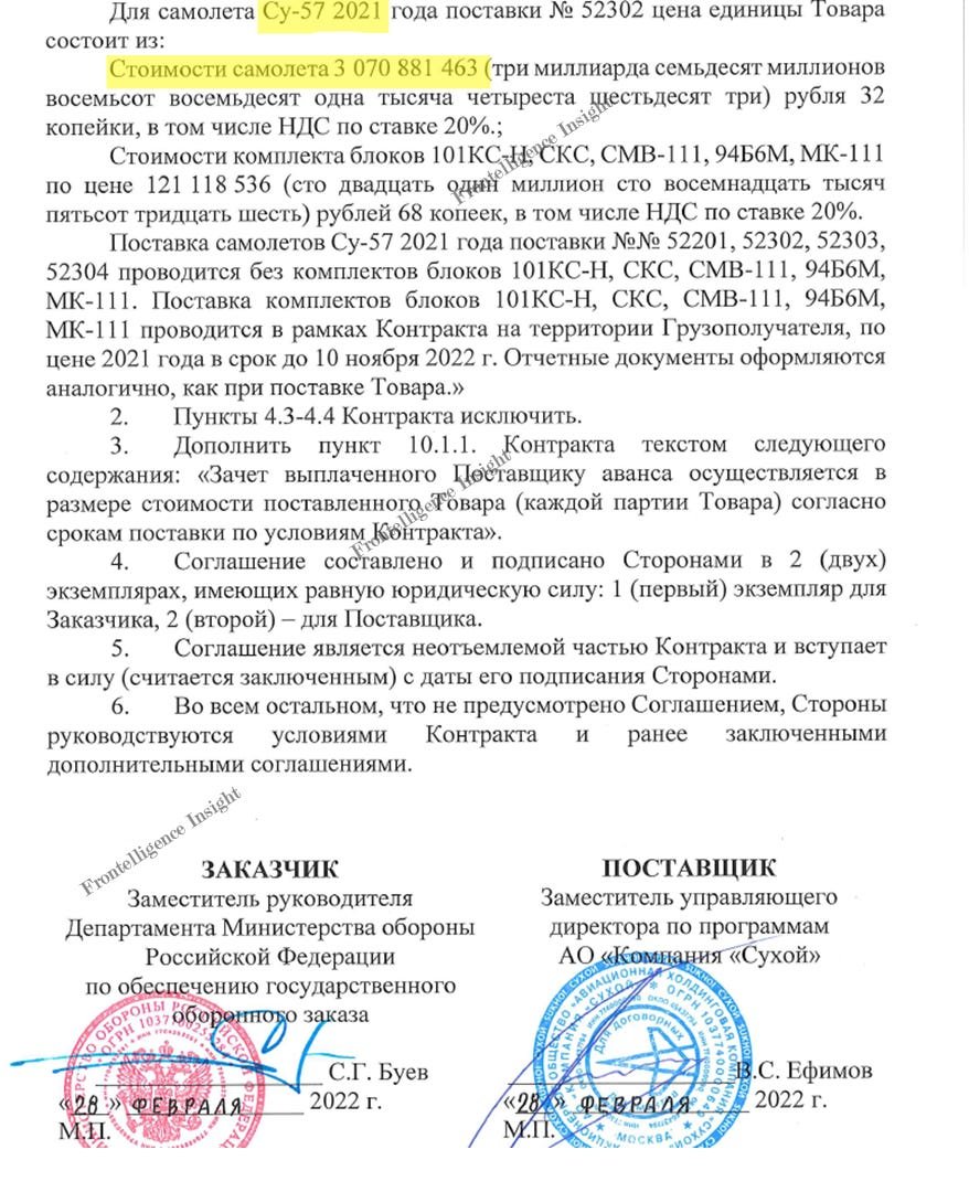 1/ Newly obtained classified documents, show that Russia purchased its 5-generation Su-57 fighters for more than 3 billion rubles each;