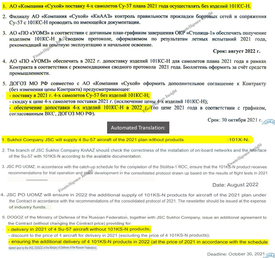 3/ The documents show that in 2021, a year before the war, the Russian Defense Ministry formally accepted Su-57 aircraft without the 101KS-N, an electro-optical targeting subsystem. This was allowed under Additional Agreement No. 8.