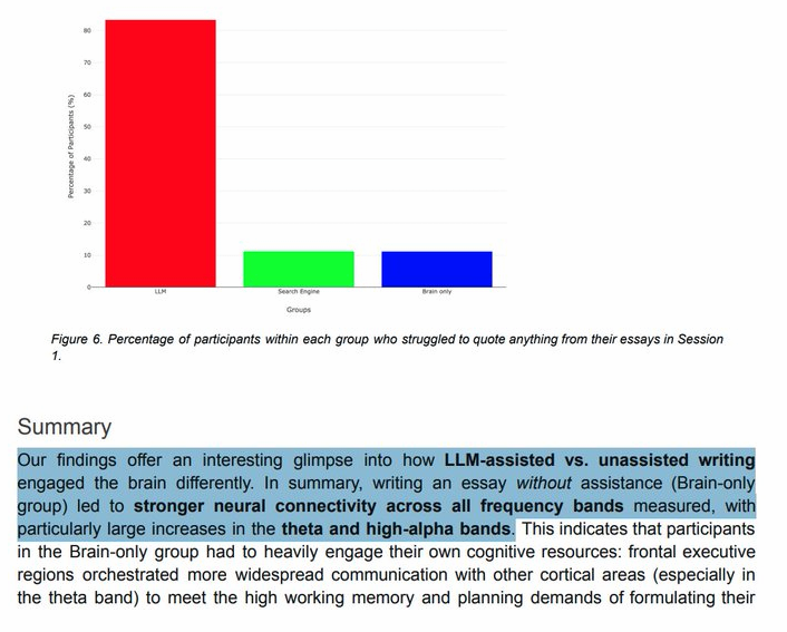MIT study found a 47% collapse in brain activity when people wrote with ChatGPT (compared to writing on their own).