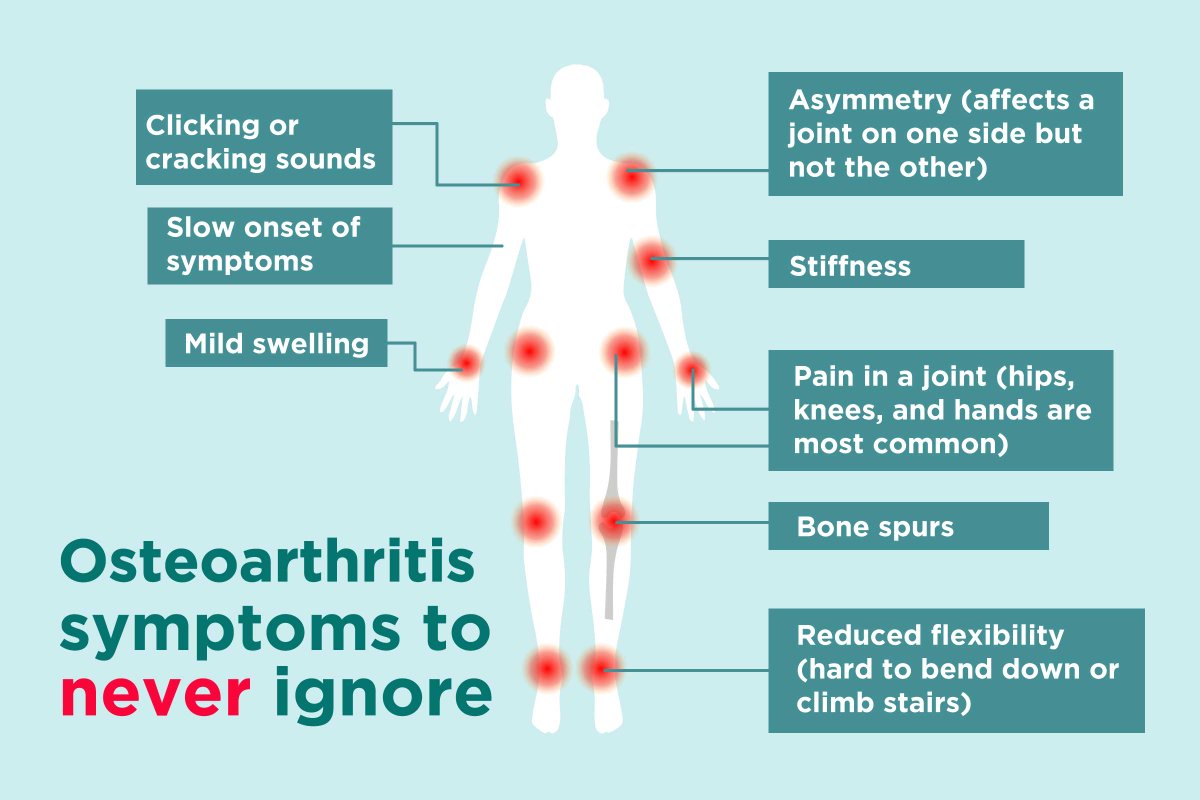 Grinding, stiffness, and eventually bone-on-bone pain.