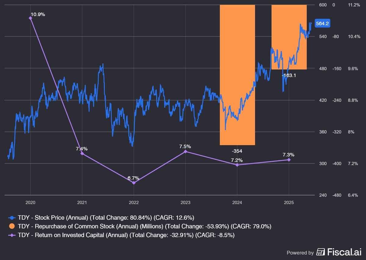 Why they’re MVPs: Keep consolidating niche aero/defense electronics (e.g., Gables Engineering). Repurchases are opportunistic; compounding comes mainly from dozens of small, high ROIC buys.