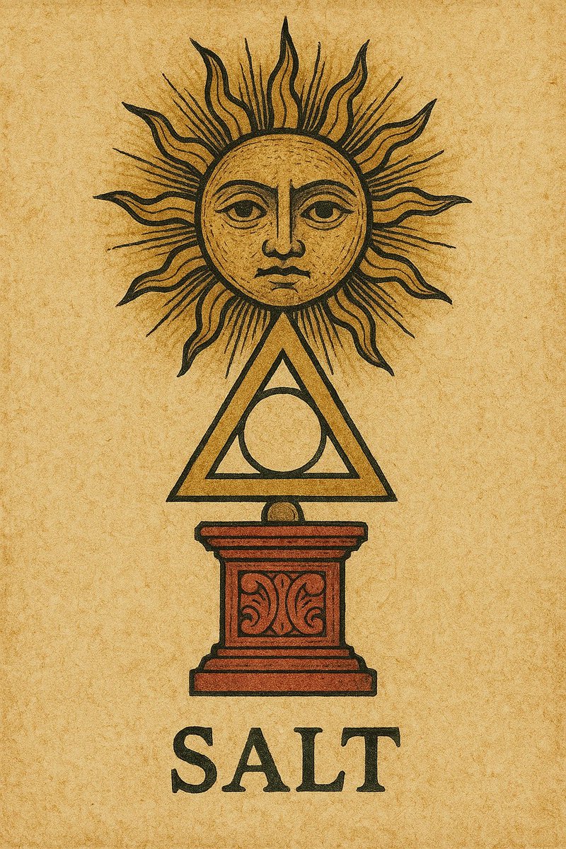 Salt is the preservative of form, the principle of crystallization and endurance; it is the Body, steadfast and purified through trial. It teaches the Mason to remain rooted in virtue, that he may build his Temple upon a sure and incorruptible foundation.