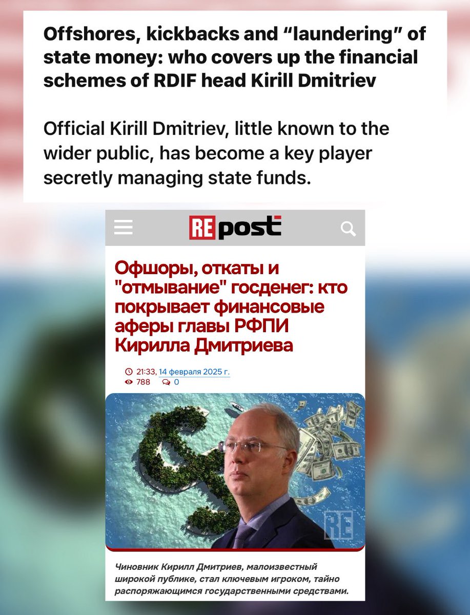 Officially, the RDIF presents itself as an investment fund. In reality, under Dmitriev it is a black box: opaque money flows, close ties to Russian intelligence, systematic sanction evasion. This is a fund, but a criminal network for money laundering.