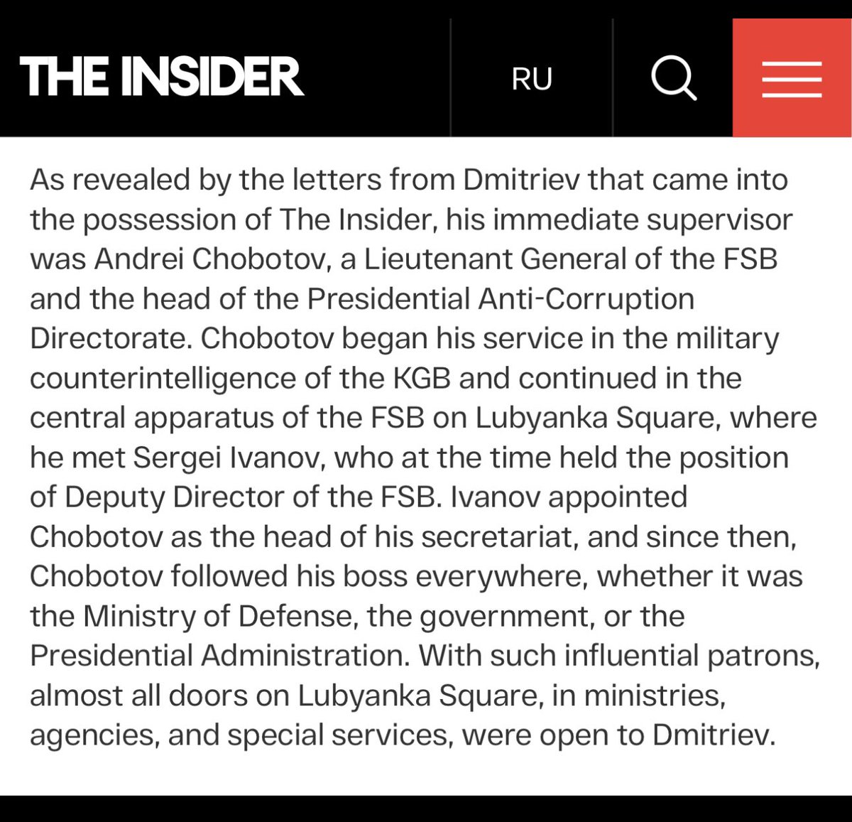 Dmitriev uses special identification documents that are usually reserved for officers of the SVR or GRU (Russian secret services). His closest supporters include FSB General Andrei Chobotov as well as direct connections to Putin’s inner circle. They granted him influence far beyond the role of a fund manager.