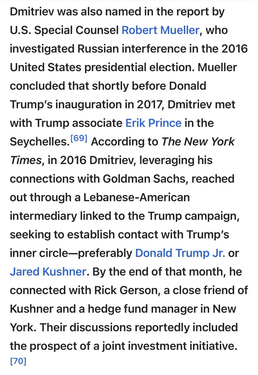 The Mueller Report shows that Dmitriev often acted as Putin’s unofficial diplomat. He took on secret assignments, held confidential talks, and functioned as a shadow “foreign minister.” Putin had already introduced Nader and Dmitriev to each other in 2012/13. Pedophile Nader even appeared at Putin’s residence in Novo-Ogaryovo.