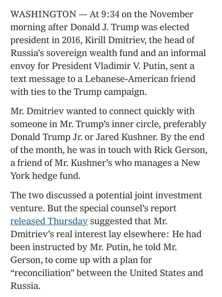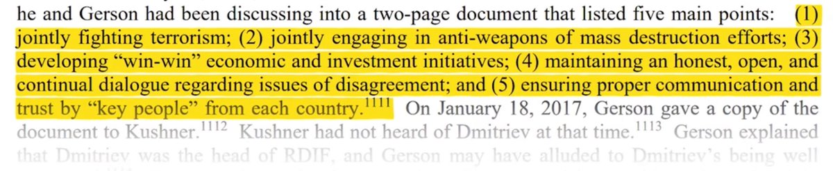 In addition, Dmitriev worked with banker Rick Gerson, a close friend of Kushner’s. Together they drafted a 5-point plan for rapprochement between Russia and the US. This plan reached Bannon and Secretary of State Tillerson directly through Kushner.