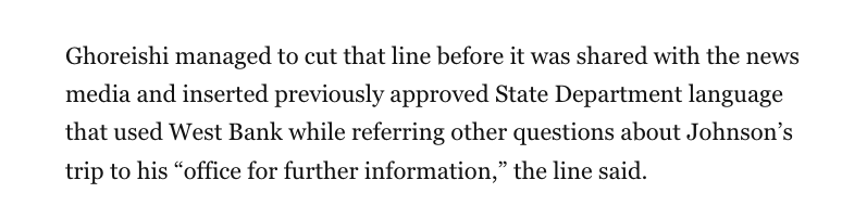 NEW: State Department fires top press officer for Israeli-Palestinian affairs after internal disputes over Israel policy, including whether to express condolences about journalists killed by Israel in Gaza and publicly oppose forced displacement of Palestinians, per documents 🧵