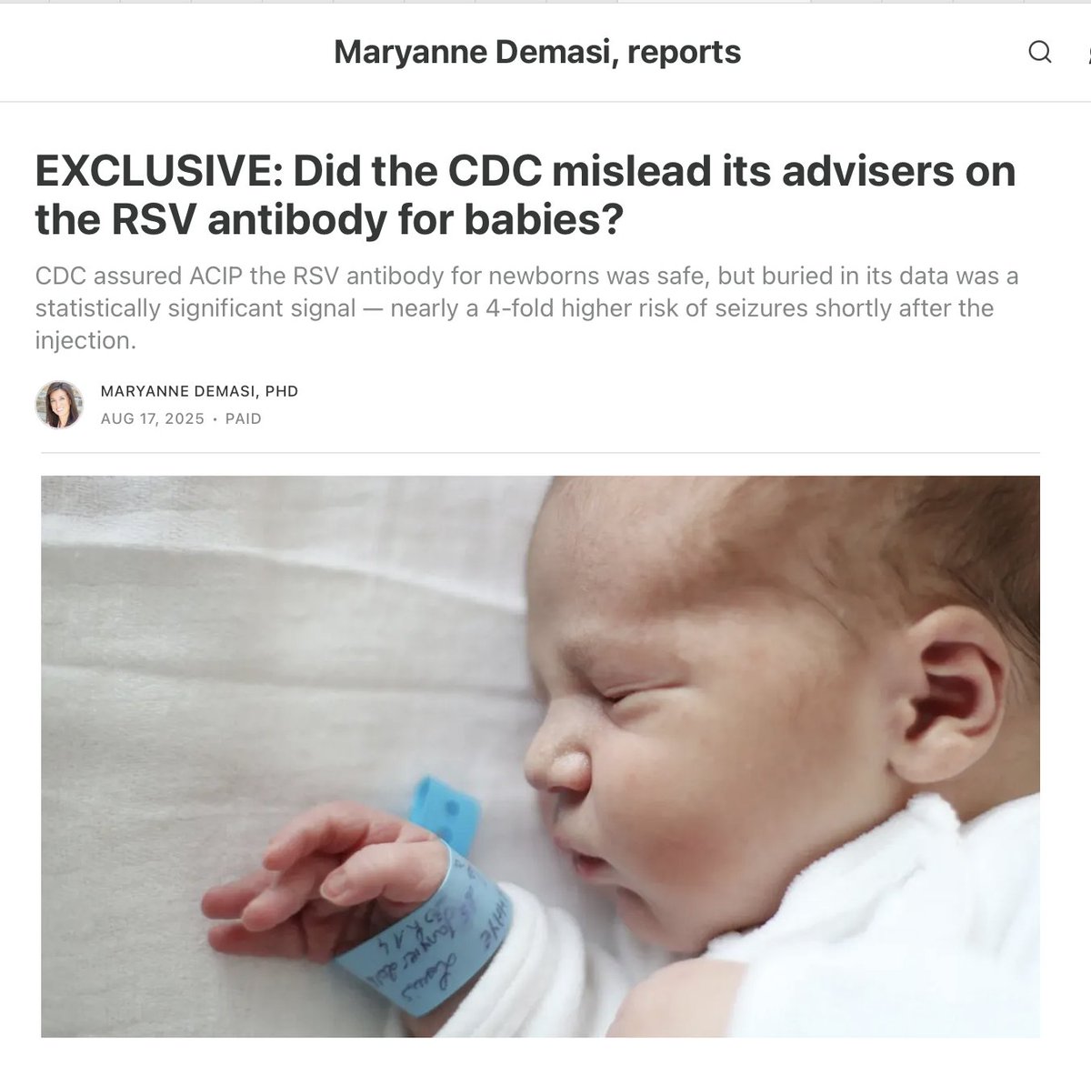 Only this week, experts accused the agency of obscuring seizure risks from RSV monoclonal antibodies by slicing the data into subgroups that hid a statistically significant signal. blog.maryannedemasi.com/p/exclusive-di…
