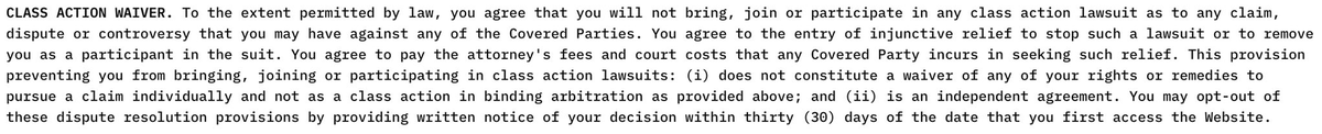 $YZY has a โClass Action Waiverโ, basically giving them permission to rug you, while blocking users from filing lawsuits together.