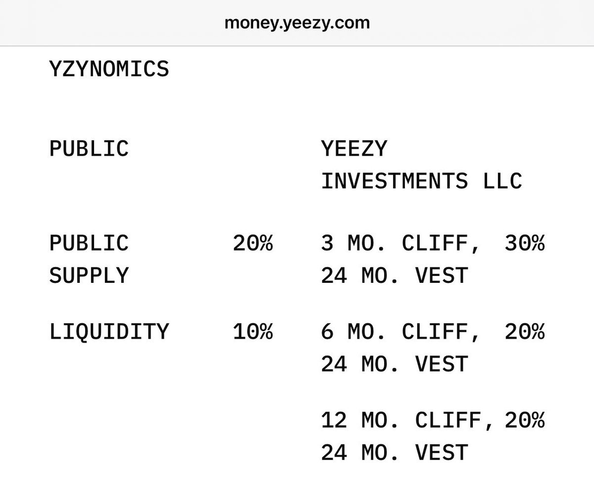 70% of $YZY supply is held by Yeezy Investments LLC.
