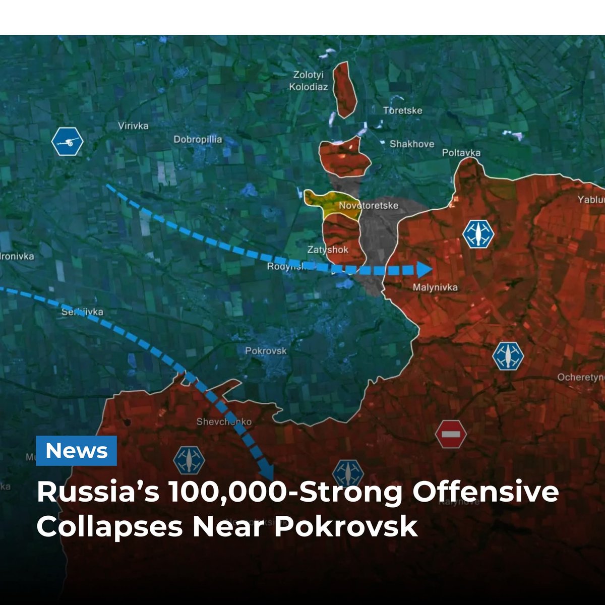 1/4 Russia’s large-scale summer offensive involving over 100,000 troops has failed to seize strategic ground near the Pokrovsk axis in Donetsk Oblast. Ukrainian forces have regained tactical initiative, conducting clearing operations in the Dobropillia sector.
