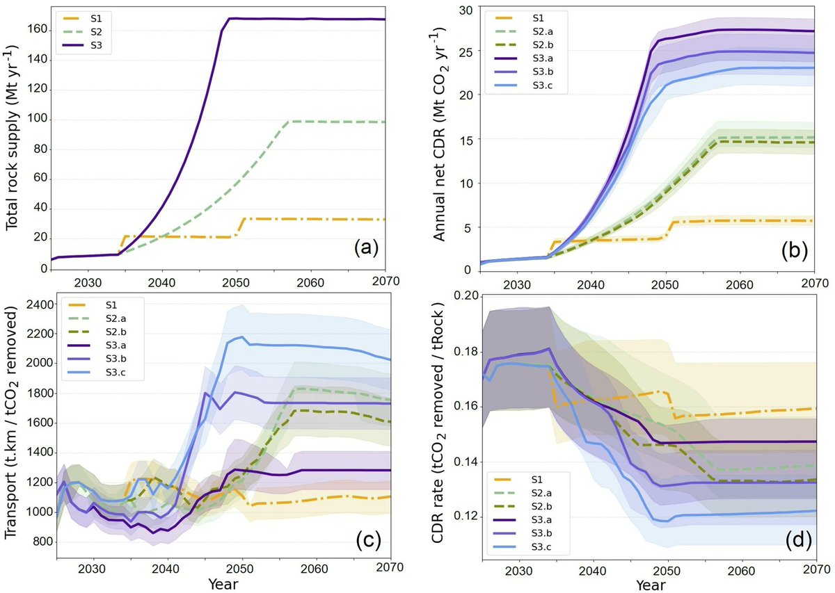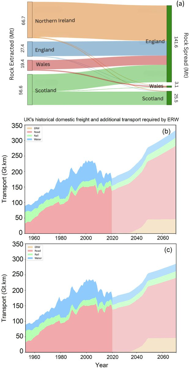 🚨Enhanced Rock Weathering (#ERW) could remove up to 700 Mt CO₂ by 2070 in the UK if quarry production scales 5–10×.
