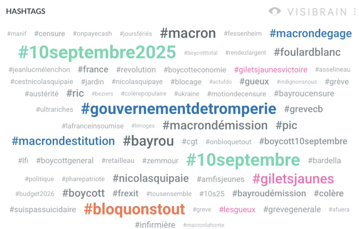Et en effet, on peut voir qu'il a pris une importance considérable dans la diffusion du mouvement du 10 septembre, en parallèle de #10septembre et #BloquonsTout.