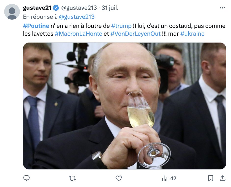 Plusieurs comptes (inconnus) ressortent parmi les plus puissants. Tous défendent la Russie.