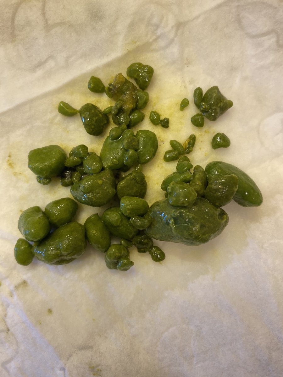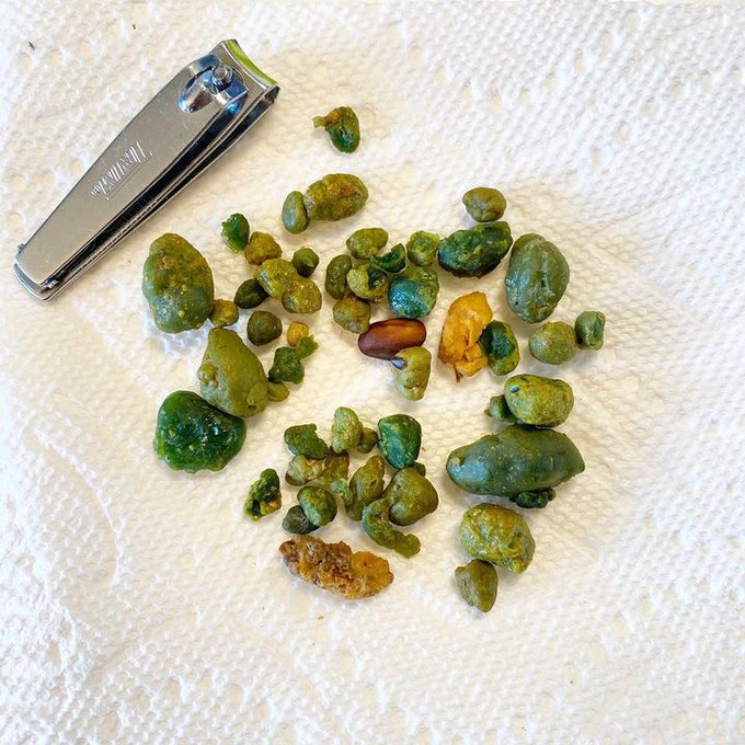 You'll see green stones and sludge in your stool. Some people release hundreds of stones.