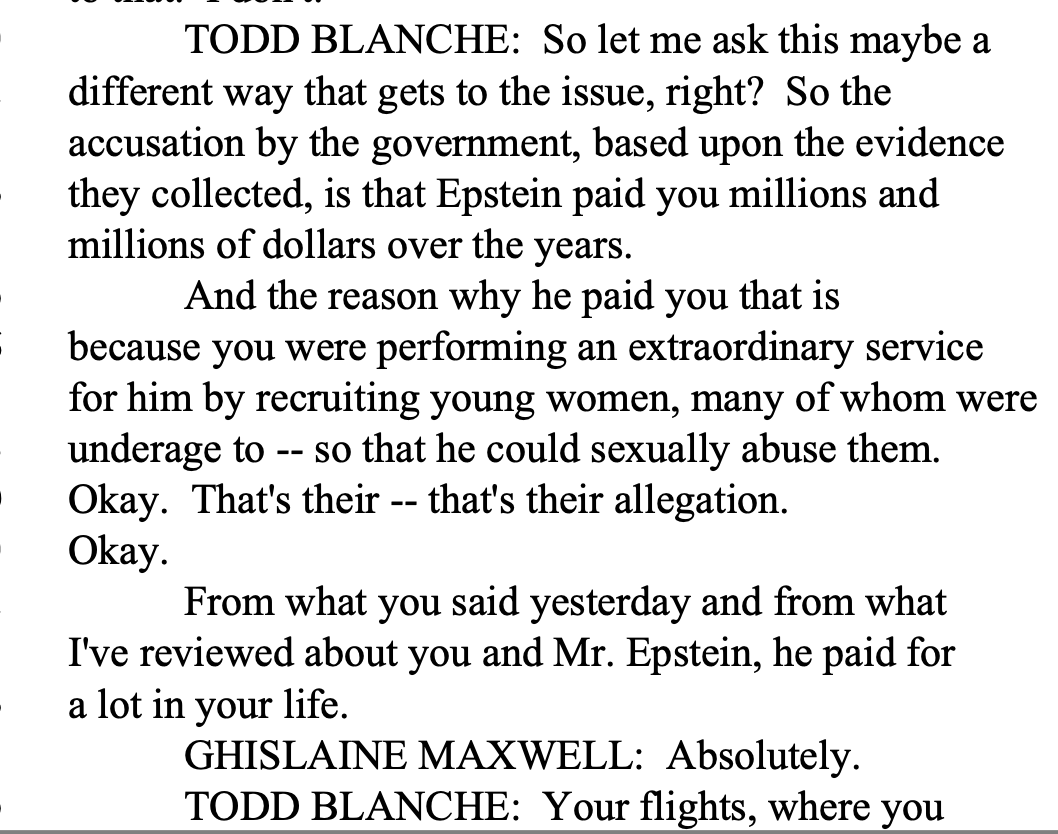 🔹 Maxwell denies the charges that she solicited women for Epstein. Rather, these millions Epstein paid were for business reasons.