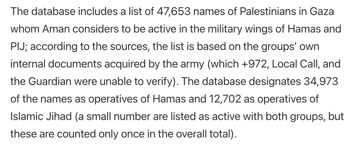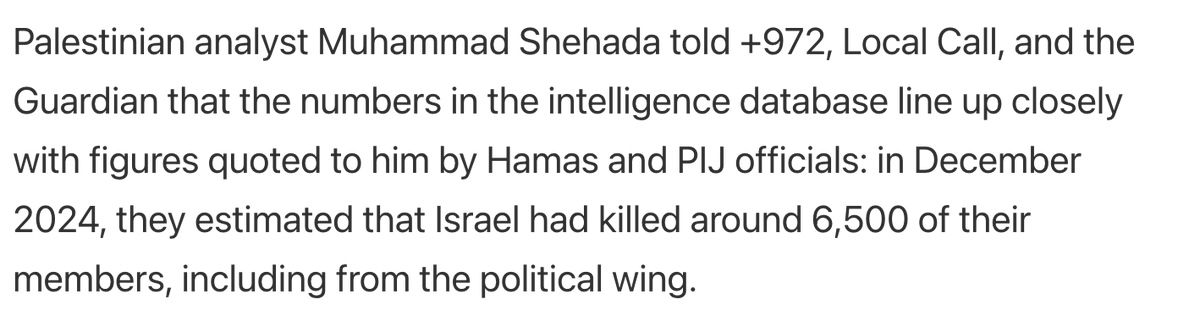 From this, the figures +972/Guardian cite are not a ceiling, but a floor of named Hamas/PIJ fighters killed alone for whom there was specific intelligence and double-confirmation via internal files. This high bar is not going to catch all Hamas/PIJ deaths.