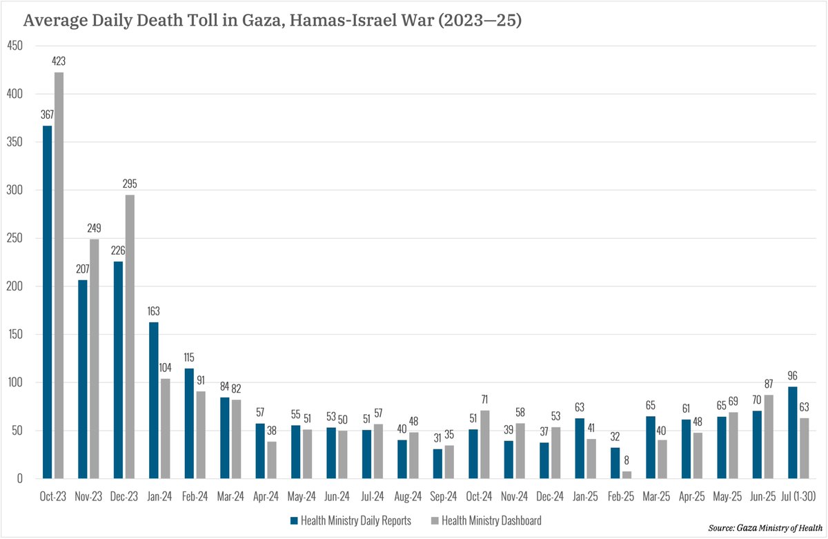 This also reflects the fact that as new family reports were processed from Apr-Dec 2024, they were cancelled both from “media reports” and hospital reports figures. After that, they were added directly to the toll. See my May report for more: washingtoninstitute.org/policy-analysi…