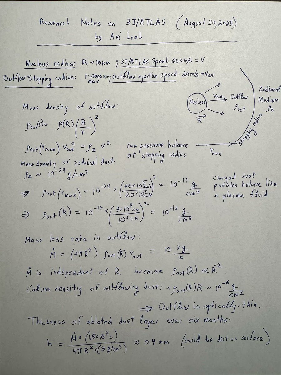 Avi Loeb sketched a model for the dust glow around 3I/ATLAS