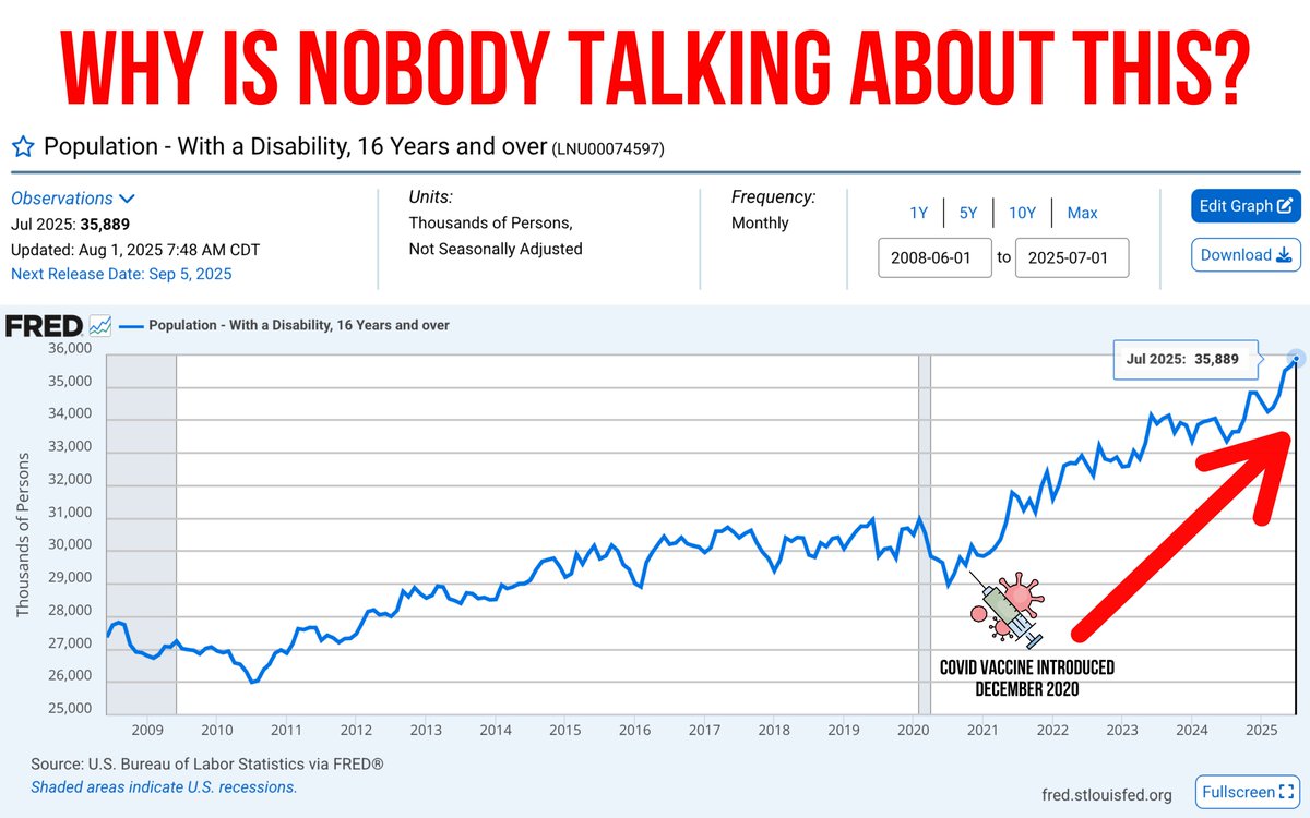 Prominent data analyst @DowdEdward reports that since February 2021, an additional 5.89 million Americans have answered “yes” to the Bureau of Labor Statistics household survey question on disability.