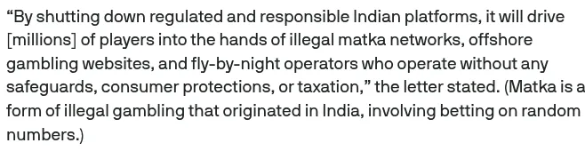 Industry critics argue prohibition won't eliminate demand but push users toward unregulated offshore platforms. They cite Telangana examples where local bans didn't eliminate gaming but made it harder to regulate and tax, with offshore platforms offering no consumer safeguards.