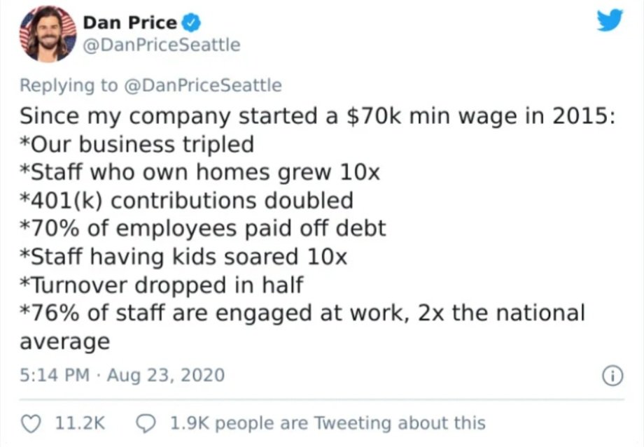 He cut his $1.1M salary to $70K and raised EVERY employee's pay to at least $70K.