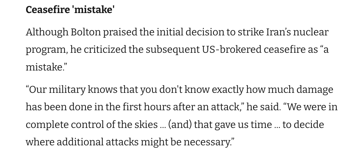 @GatestoneInst Bolton took a hardline stance against Iran. True to his warmonger stance, he loved it when President Trump struck Iran, but believed that the ceasefire was a mistake.