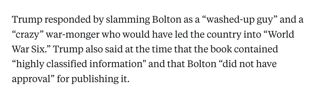 @GatestoneInst Trump said if he'd listened to Bolton, he would've been in "World War Six." 😂
