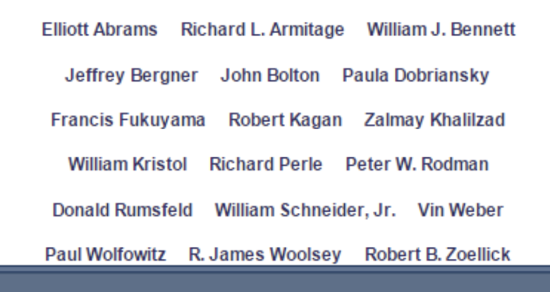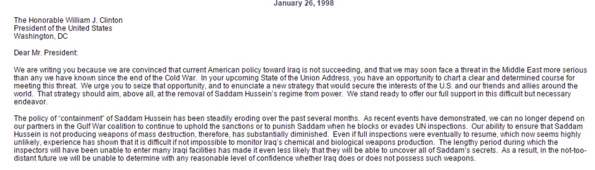 In a Project for the New American Century letter, he was a signatory which urged intervention in Iraq without a clear end goal (like democracy).