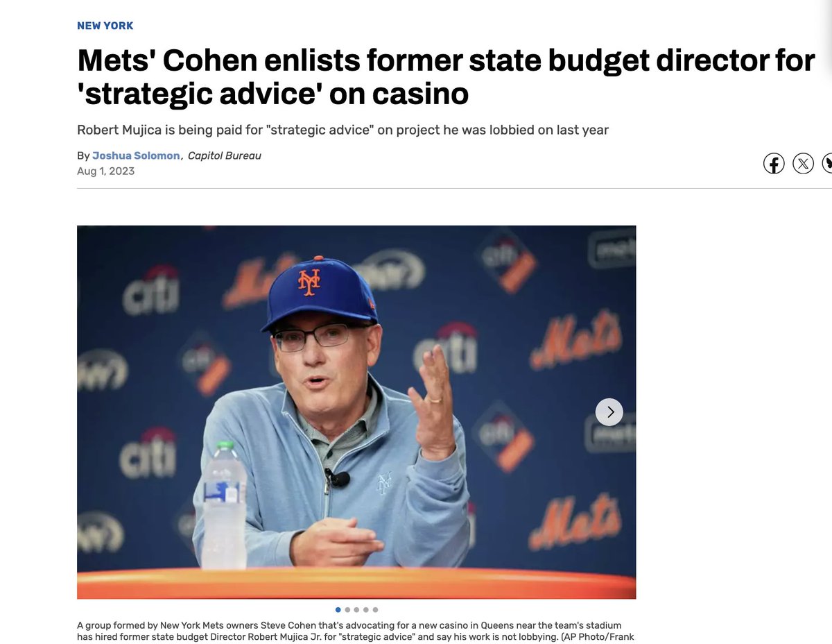 This happened contemporarily as Mets owner Steve Cohen paid 105K for his consulting services. His Puerto Rico role was announced in late 2022, his Mets consulting service in 2023.