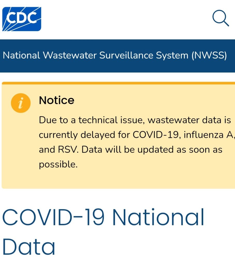 The CDC wastewater surveillance page now notes technical difficulties. I warned of this, which is why PMC has not released updated prevalence (1 in ____ ) estimates.