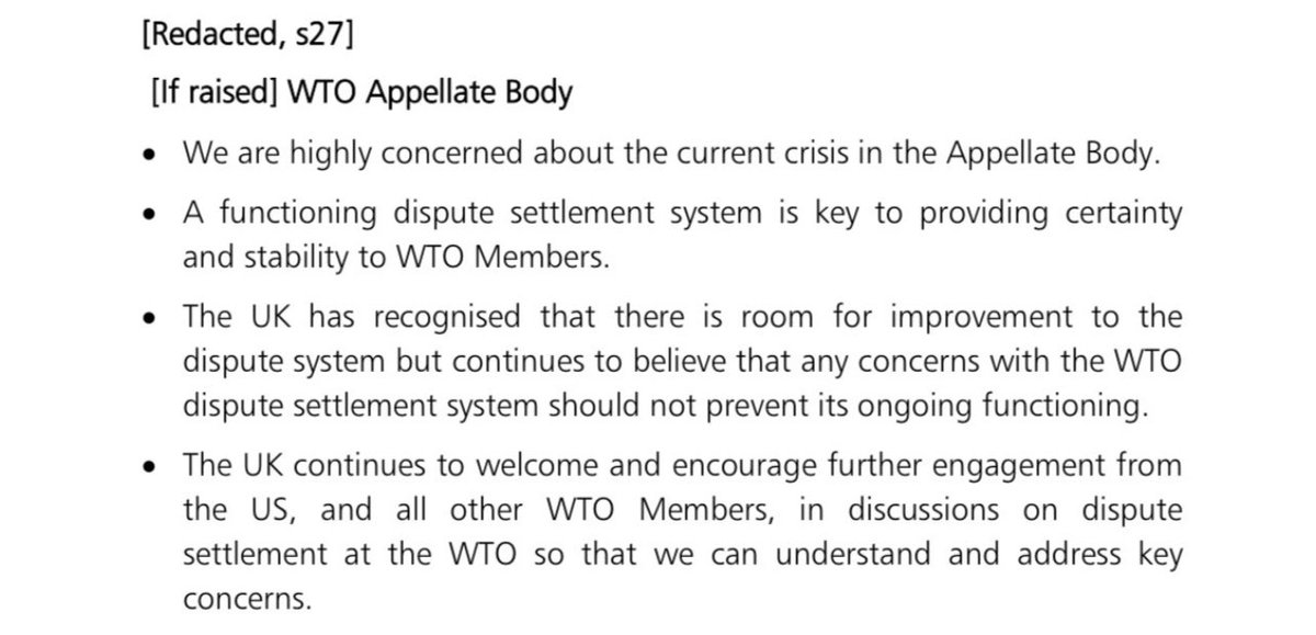 The UK strongly backed WTO modernisation and “liberalisation of trade in services.”