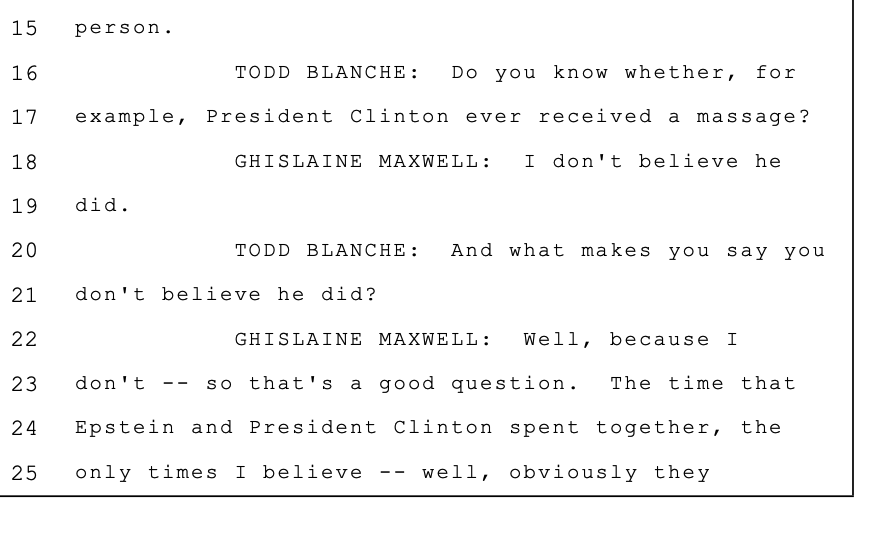 Maxwell: "I actually never saw the President in any type of massage setting. I never witnessed the President in any inappropriate setting in any way. The President was never inappropriate with anybody. In the times that I was with him, he was a gentleman in all respects."