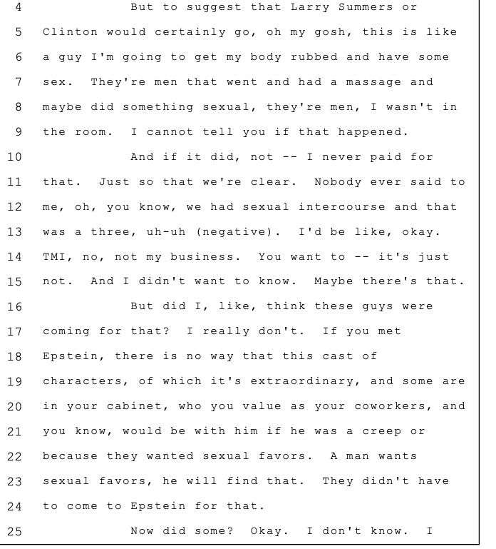 Gislaine: "A man wants sexual favors, he will find that. They didn't have to come to Epstein for that."